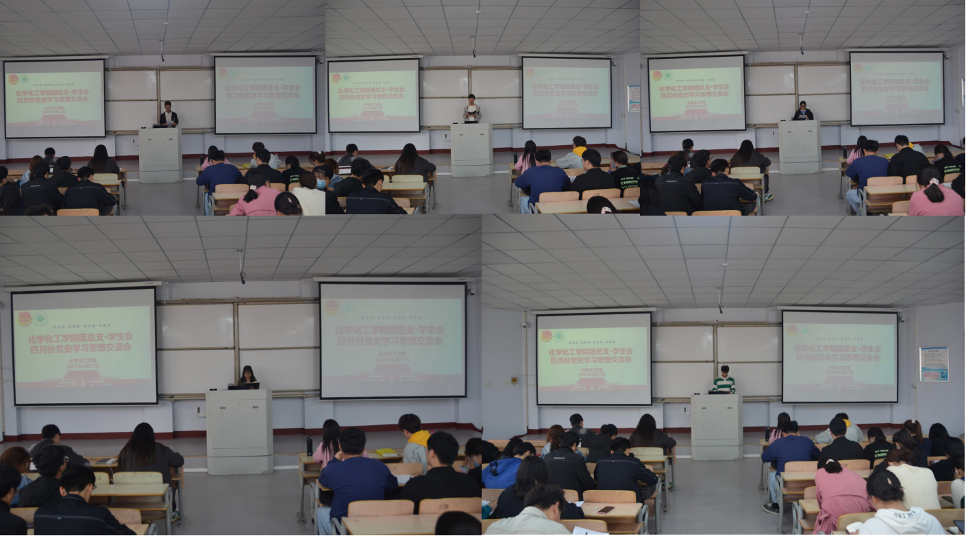 4月27日,化工学院于睢阳校区1教学号楼107教室开展党史学习思想交流会。金年会jinnianhuicom团总支副书记郭家瑞参加。