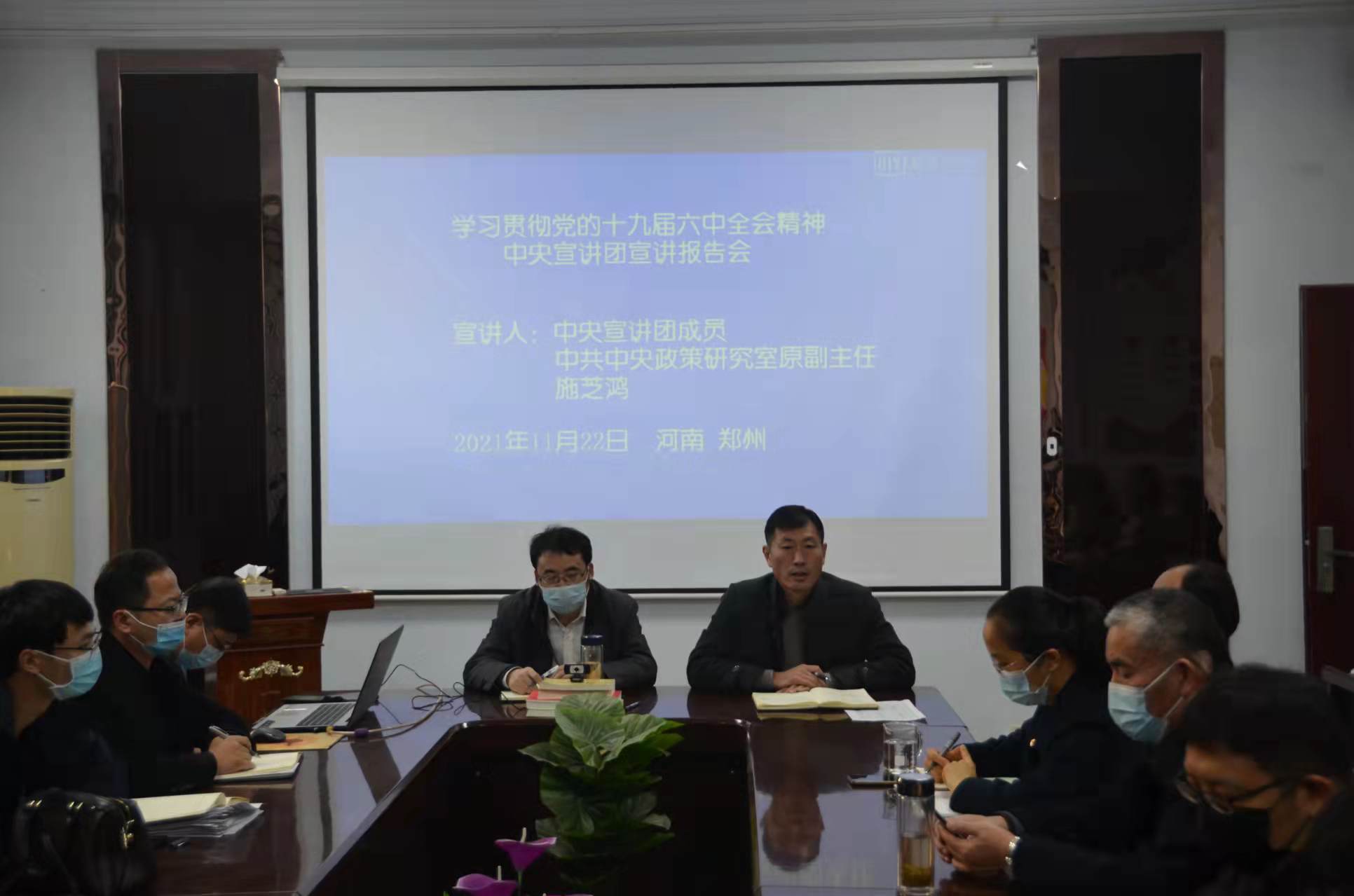 12月3日,金年会jinnianhuicom于睢阳校区7号楼学院会议室召开全体教职工会议,集体观看党的十九届六中全会精神中央宣讲团报告会在豫宣讲视频。院党委书记李海涛主持。