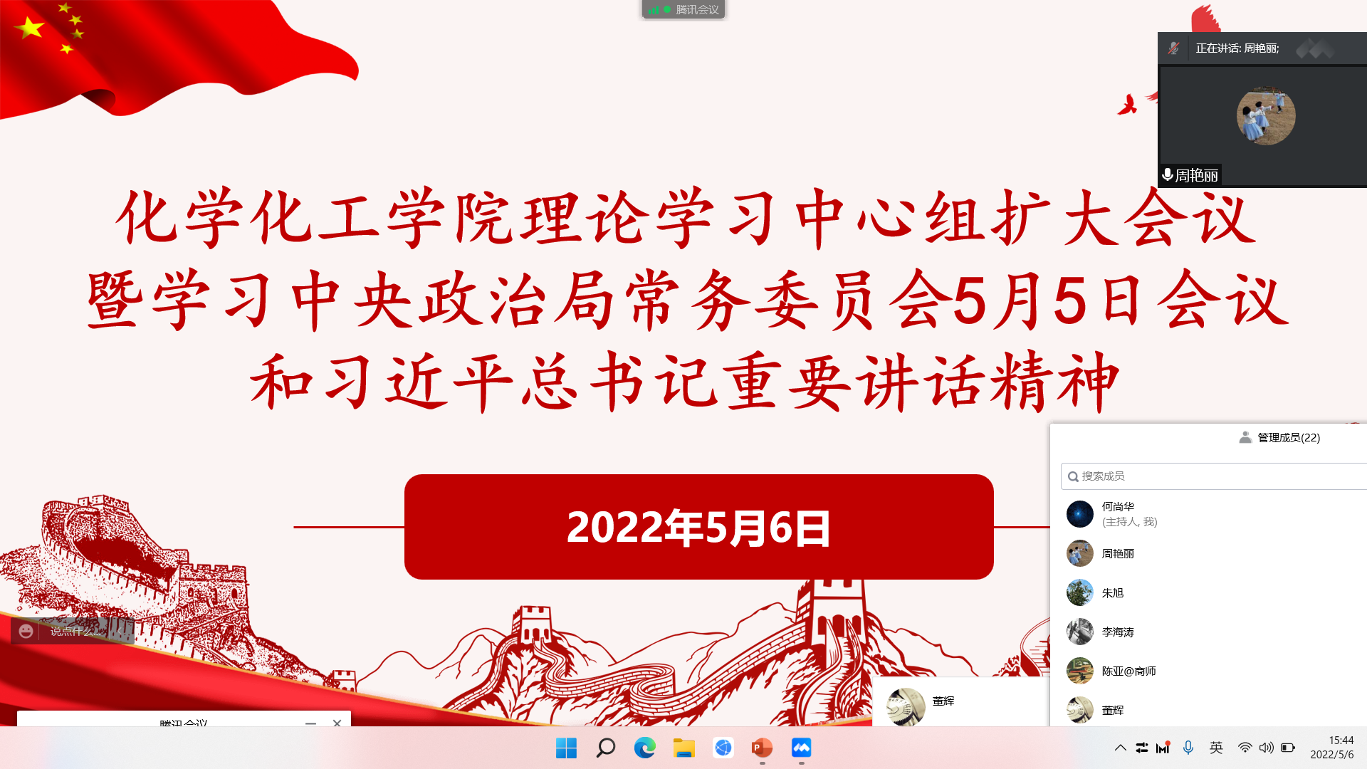 5月6日下午,金年会召开理论学习中心组扩大会议,会议通过腾讯会议线上举行。学院科级以上干部及全体辅导员参会,会议由党委书记李海涛主持。