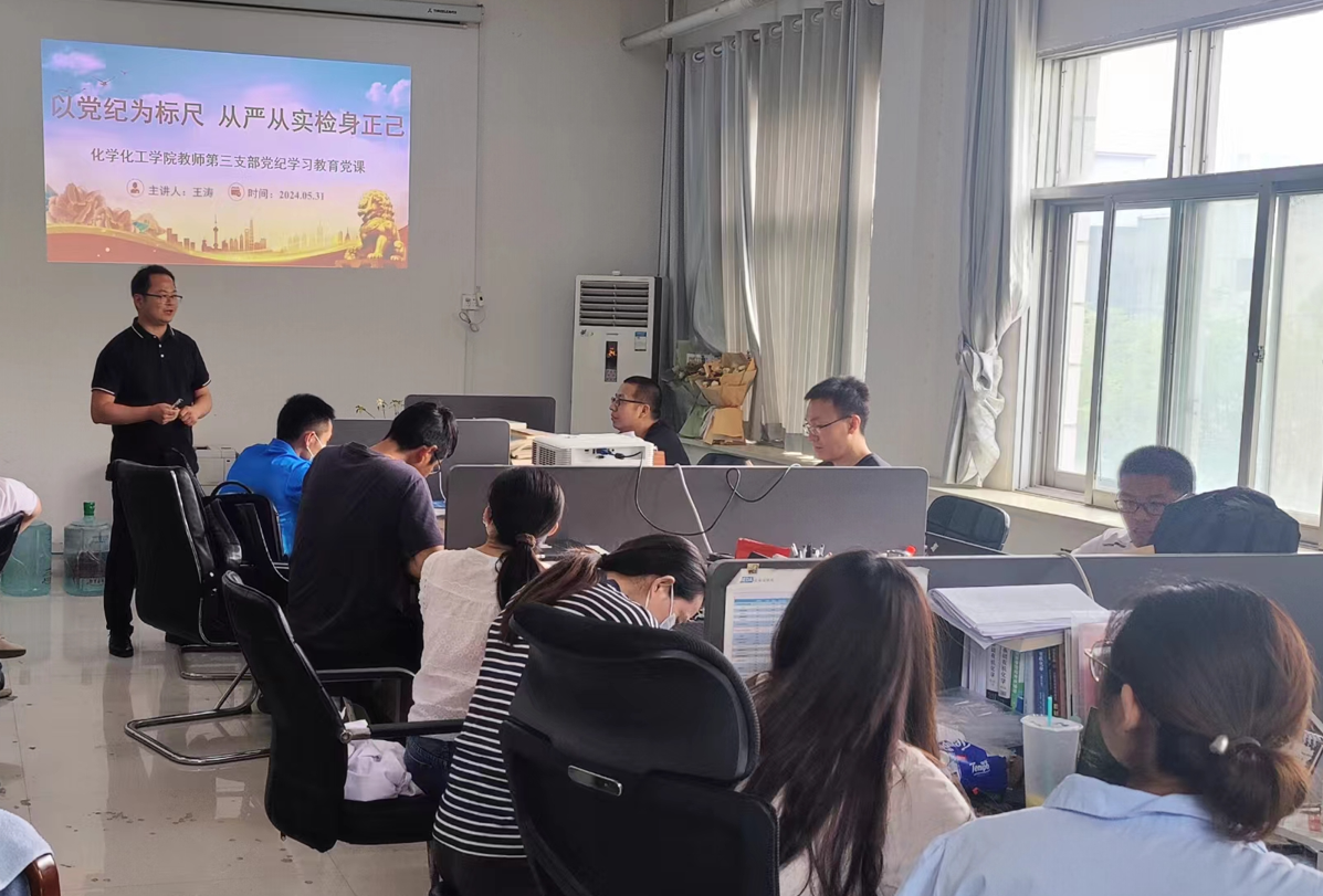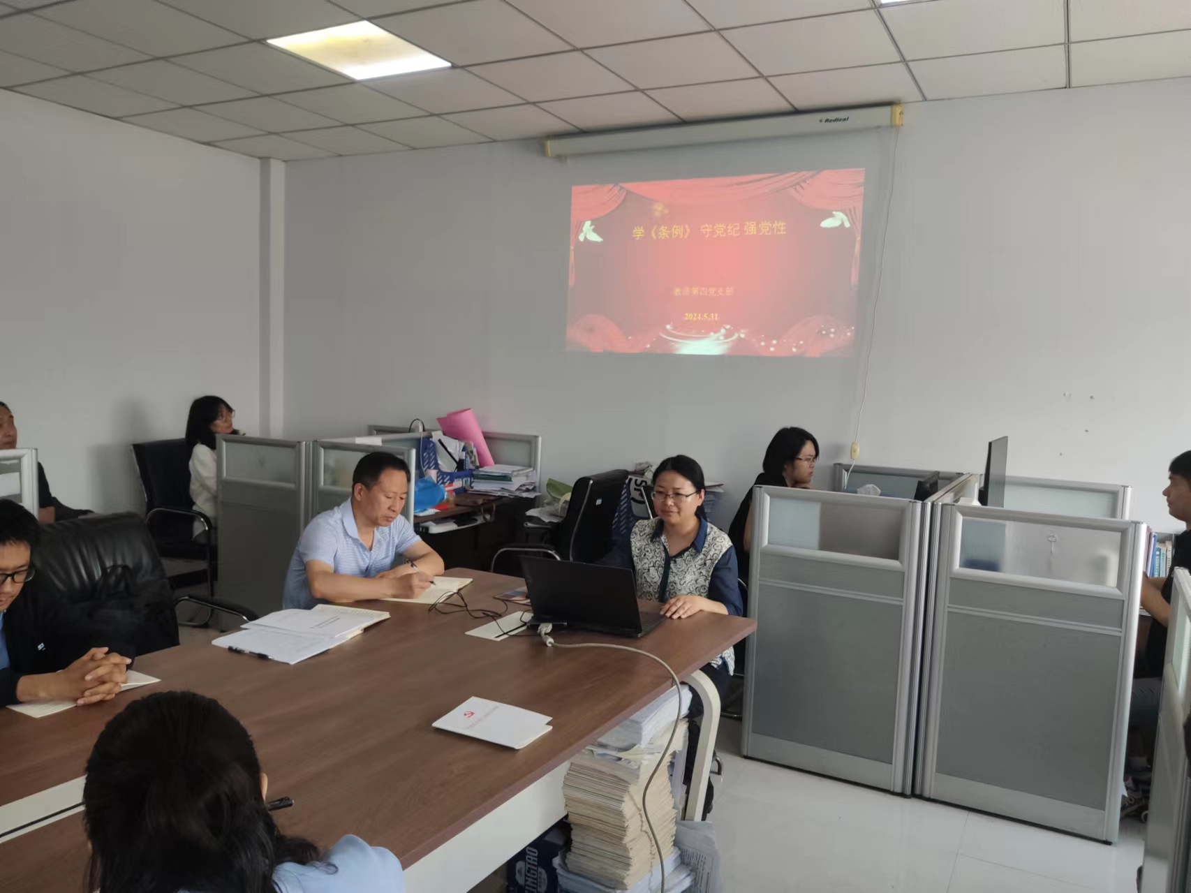 5月20日,教师第一支部书记董辉以《讲党性,守党规,严党纪》为题,结合新修订的《中国共产党纪律处分条例》进行讲解。5月31日,教师第二支部书记胡新成进行党课教育,并带领支部成员对《中国共产党纪律处分条例》集中研讨学习,学院党委书记李海涛同志以普通党员身份参加支部学习研讨;教师第三支部联系领导王涛副院长深入支部进行《以党纪为标尺,从严从实检身正己》党课活动,并围绕《条例》进行“学纪律,强党性”知识竞赛主题党日活动;教师第四党支部进行“学《条例》,守党纪,强党性”主题党日活动,并进行集中研讨学习,学院党委副书记张颜梅参加并给与指导。
