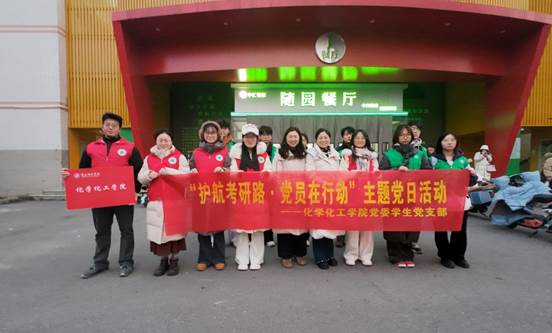活动前,成立专项工作组,明确分工、完成排班与物资筹备,活动期间,学生党员志愿者不惧严寒、准时到岗,每日清晨6:50前、中午12:20前抵达考点集合点摆放引导标识,协助考生有序入场,用细致周到的服务为紧张的考研现场增添了一份安心与温度。