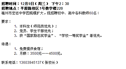亳州市宏志中学专场招聘