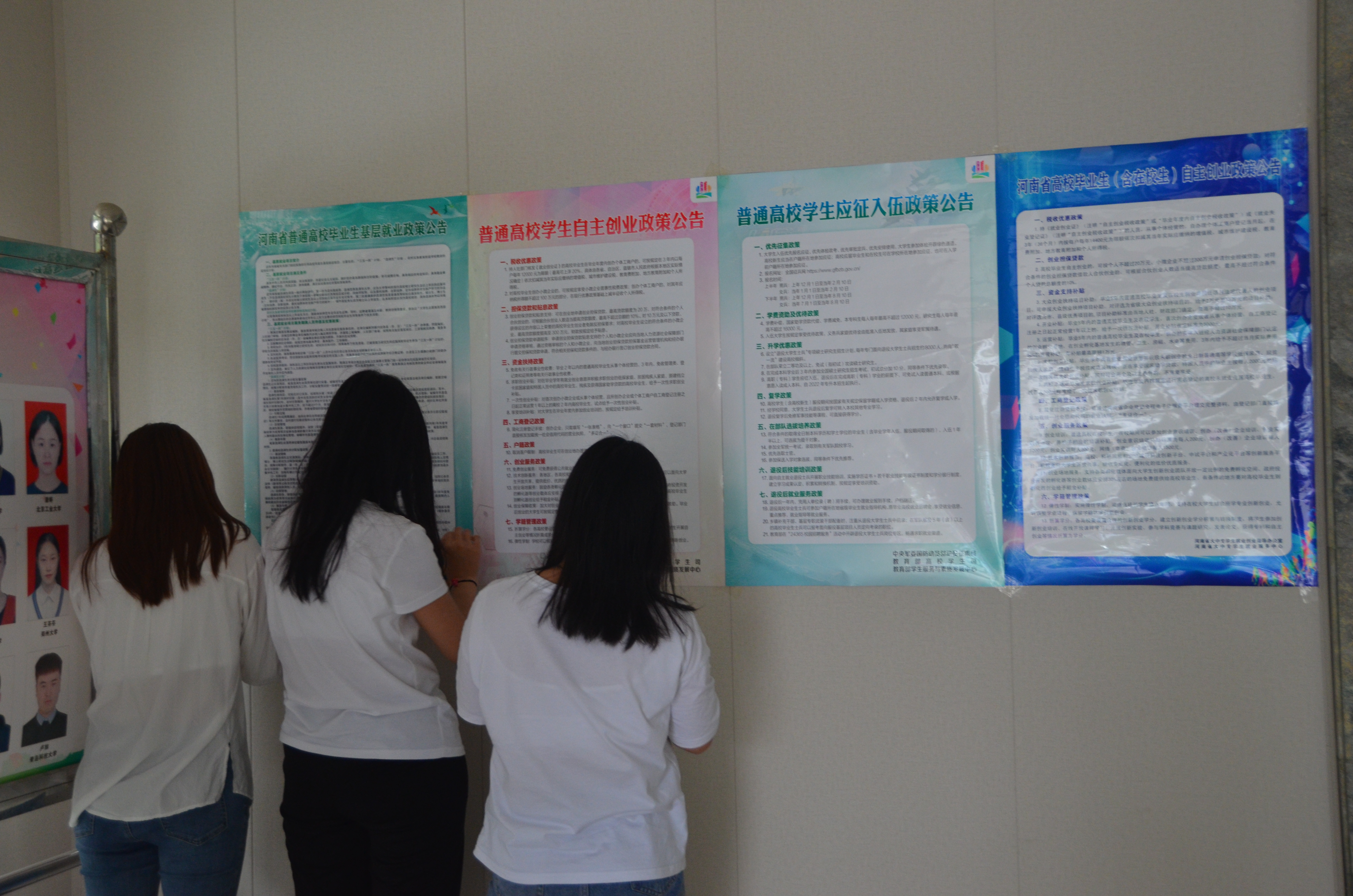 首先学生会成员将就业创业政策相关内容进行筛选,并将海报张贴在学生日常活动的教学楼、宿舍、餐厅、就业创业服务大厅、校内众创空间等场所,现场为学生解读政策、收集学生的问题和建议。其次,采用线上和线下相结合的方式,通过微信公众号、微博、班级群等广泛宣传解读国家相关政策措施,帮助毕业生知晓、用好政策,帮助低年级学生提前了解相关政策。