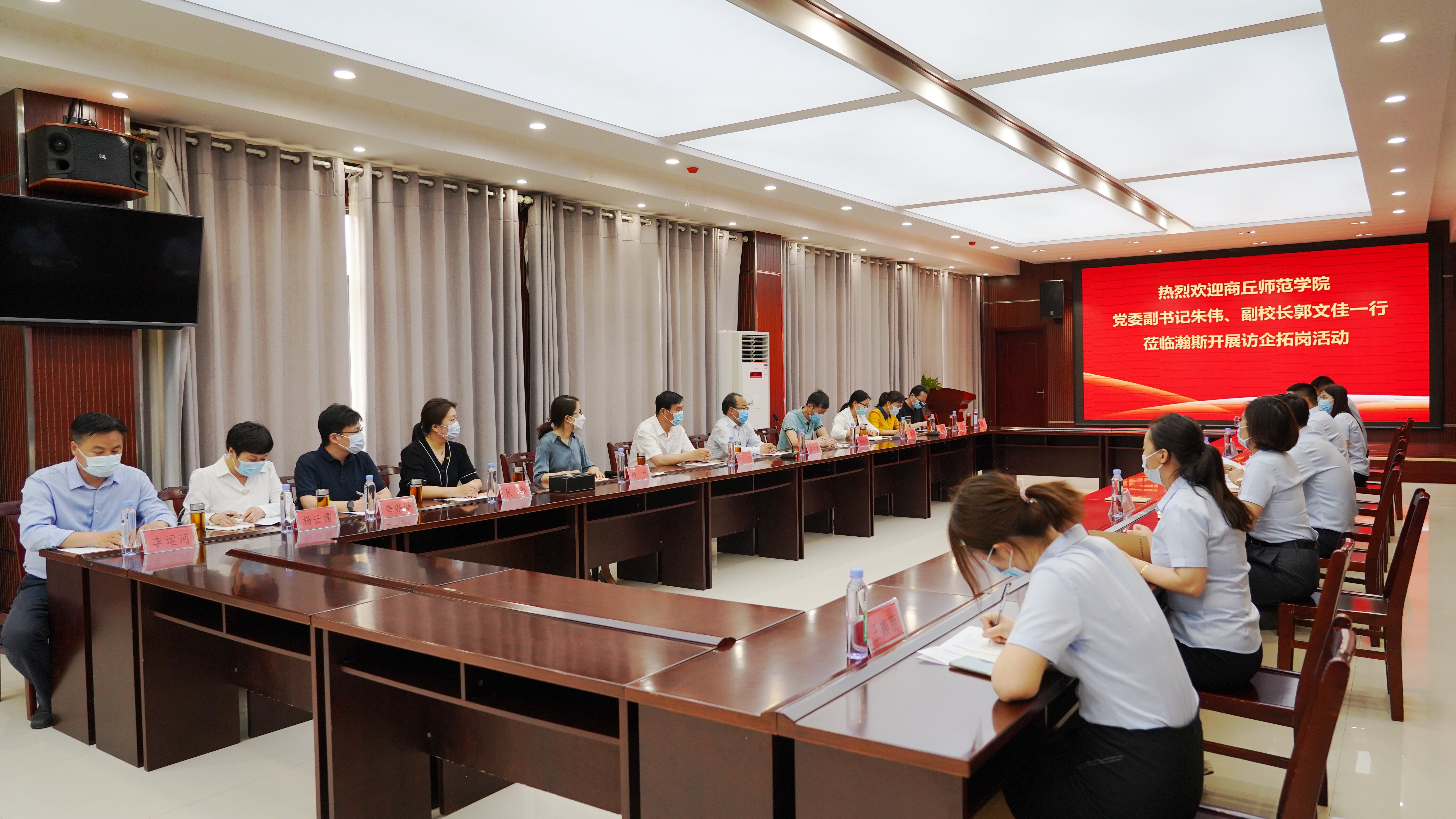 河南瀚斯副总经理申先锋、赵强、人力资源部总监袁艳萍等首先陪同朱伟副书记、郭文佳副校长一行对产品仓库、生产车间、党建办公室、工会办公室、展览室等进行了参观,介绍了瀚斯发展现状、发展方向、运营管理等情况。