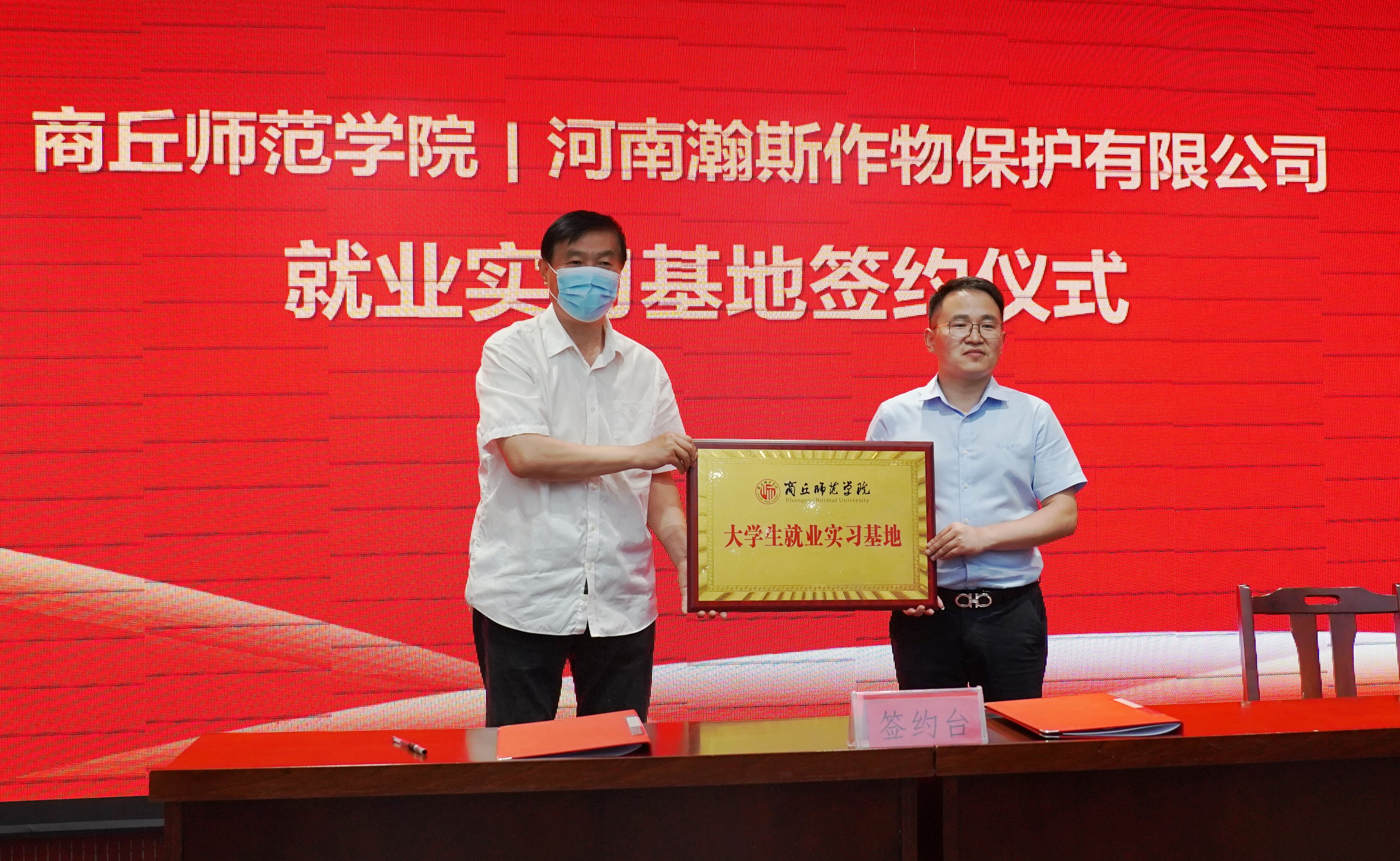 随后,朱伟副书记、赵总分别代表金年会jinnianhuicom和河南瀚斯作物保护有限公司签署毕业生就业实习实践基地协议,并现场举行了大学生就业实习基地授牌仪式。