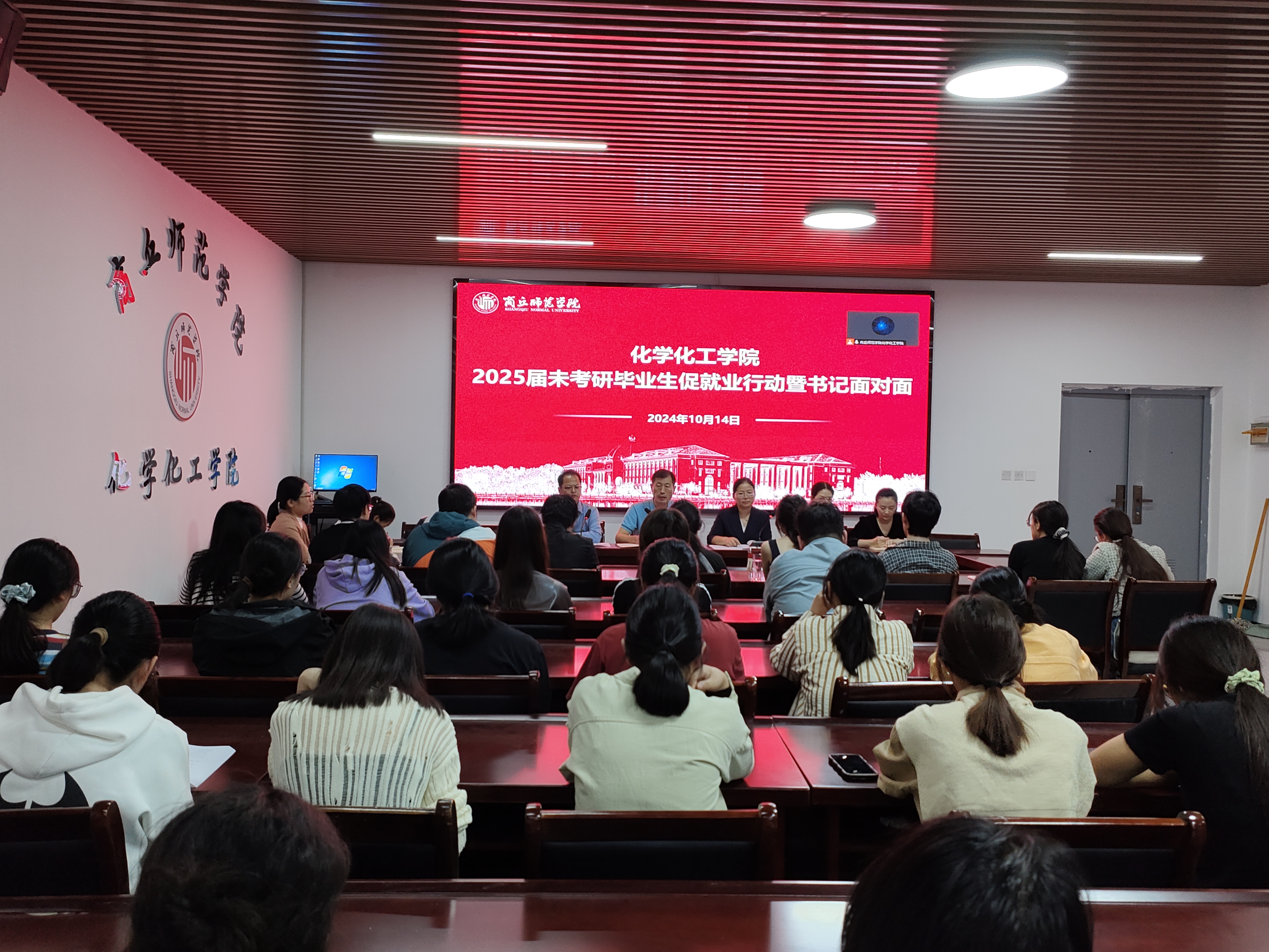 10月14日下午,金年会jinnianhuicom在睢阳校区工科实训楼B309举办了“2025届未考研毕业生促就业行动暨书记面对面活动”。此次活动旨在帮助未选择考研的毕业生更好地认清当前就业形势,树立正确的就业观念,并促进他们早日实现就业。学院党委书记李海涛、院党委副书记张颜梅、副院长王涛出席活动,毕业班辅导员、班主任以及毕业生代表参加活动。活动由院党委副书记张颜梅主持。