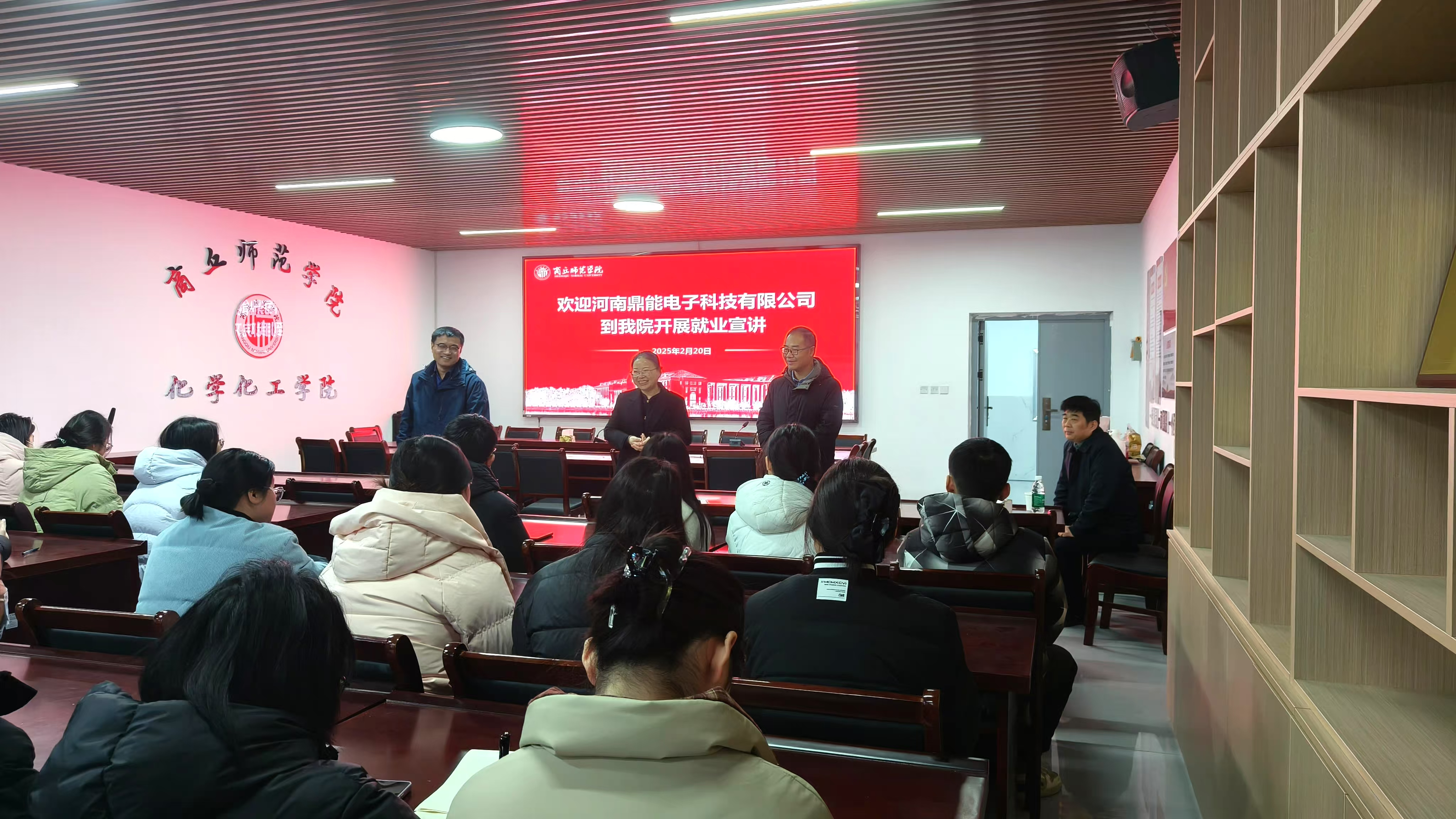 2月20日上午,金年会jinnianhuicom于睢阳校区工科实训楼3楼B309会议室举办了河南鼎能电子科技有限公司就业宣讲会,公司副总经理陈勇和人事行政总监鲁朴走进学院,与毕业生代表交流。学院党委副书记张颜梅、副院长魏伟、2025届毕业生辅导员郭家瑞以及毕业生代表参加此次宣讲会。