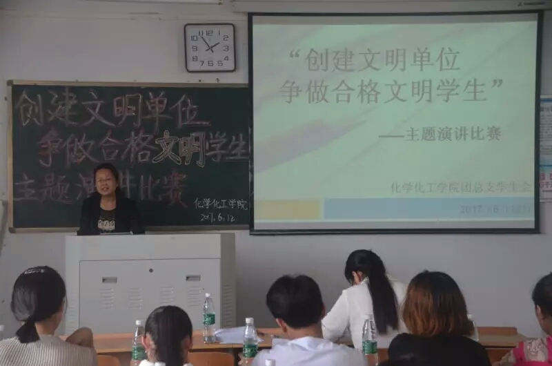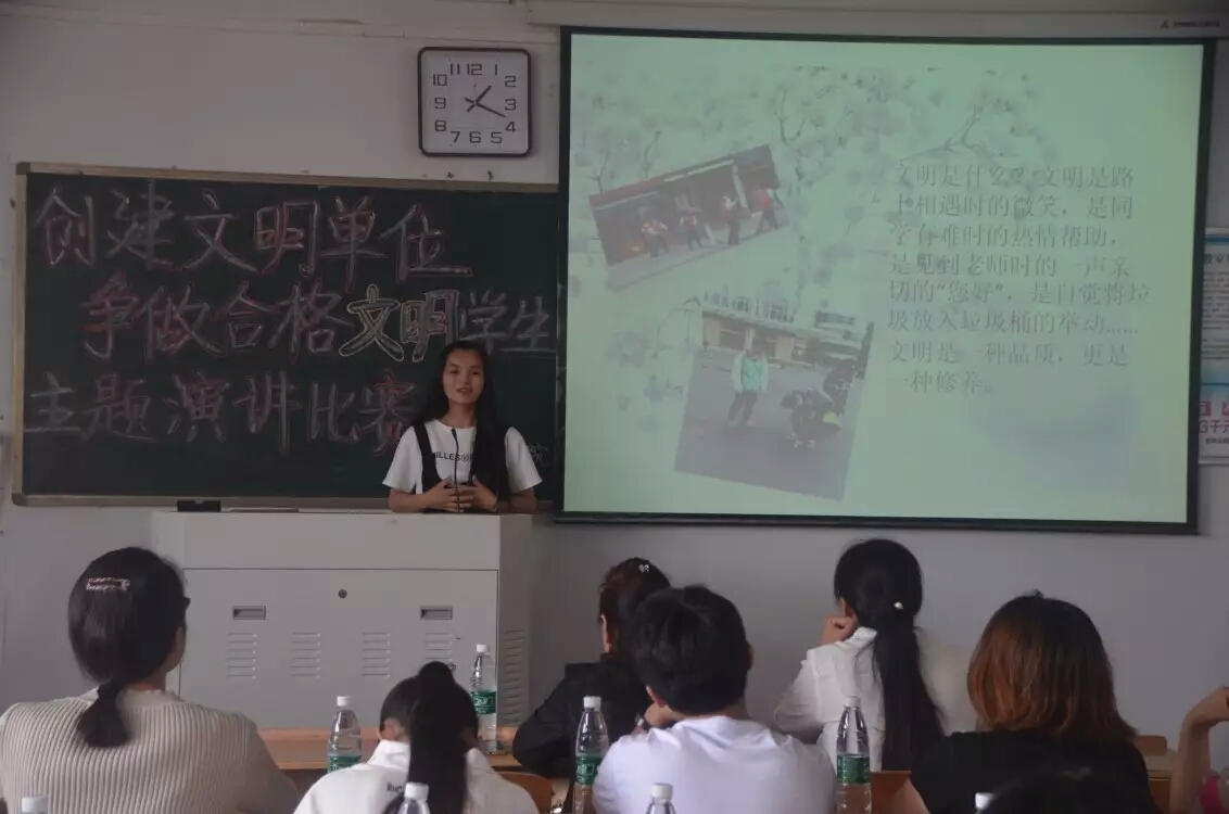 为进一步加强学校管理,培养学生良好的行为习惯,6月12日下午,金年会于金年会文化路校区1号教学楼405教室举办了以“创建文明单位,争做合格文明学生”为主题的演讲比赛,金年会党总支副书记刘瑛、团总支书记李龙梅、团总支学生会主席团及各部部长担任比赛评委。