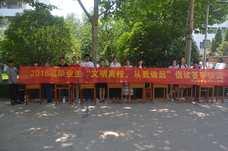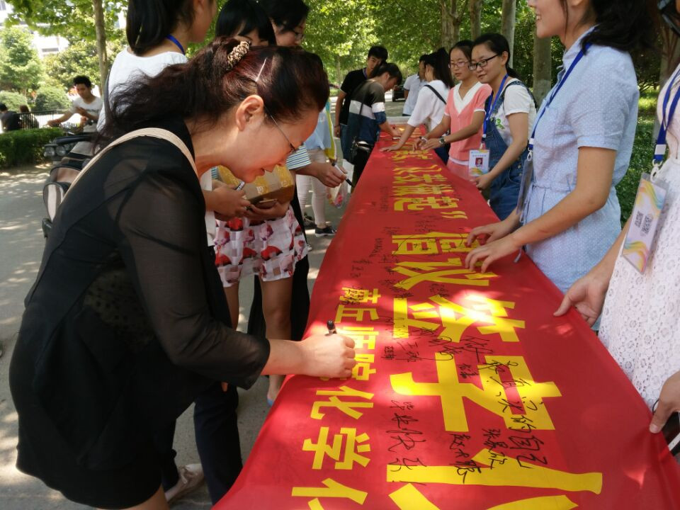 又是一年毕业季,我们有太多的不舍,也有太多的故事,此刻早已无法用言语表达。为了促进树立文明离校之风,深化文明离校意识,提高毕业生文明离校行为,留下文明标榜,为以后的毕业生文明离校树下榜样,金年会于5月24日在文化路校区图书馆门前开展了“文明离校 从我做起”倡议签字仪式活动,金年会副院长刘瑛、团总支书记李龙梅参加了此次签字活动。