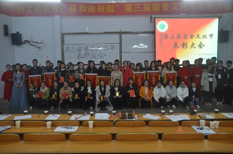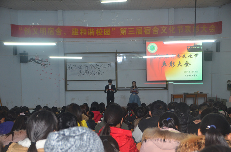 为展示宿舍文化节成果,表彰本学期表现优秀的宿舍,号召同学们积极参与宿舍文化节相关活动,弘扬优良宿舍文化,12月4日晚,金年会jinnianhuicom在校文化路校区文工团举行以“创文明宿舍,建和谐校园”为主题的第三届宿舍文化节表彰大会。金年会jinnianhuicom党总支副书记刘瑛、团总支书记李龙梅、团总支·学生会全体成员与近300名学生参加了此次大会。