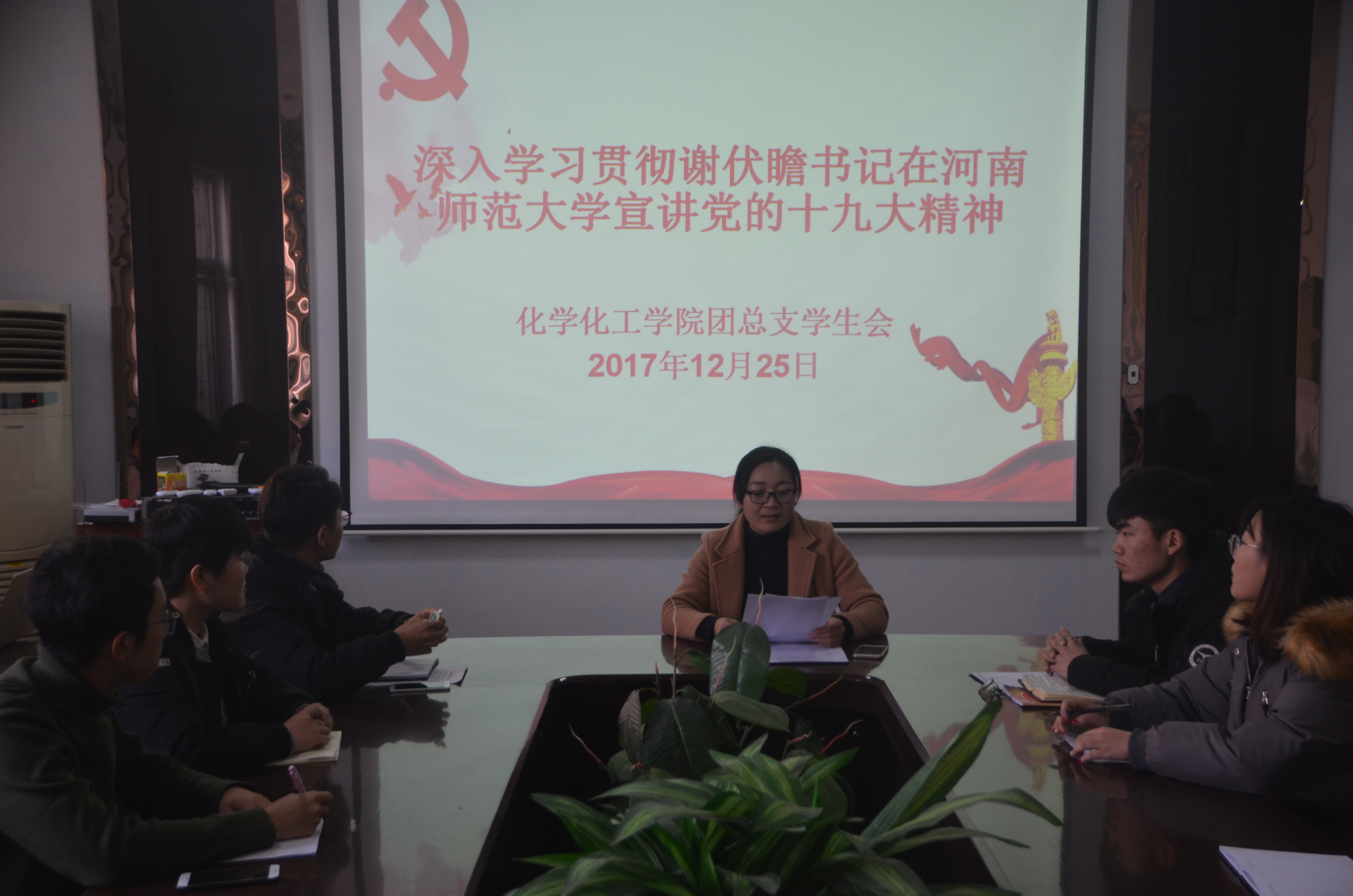 12月25日中午12:40,金年会于金年会文化路校区7号楼院会议室召开以“贯彻谢伏瞻书记在河南师范大学讲话精神”为主题的学习会。会议由金年会团总支书记李龙梅主持,全体团总支学生会成员参与。