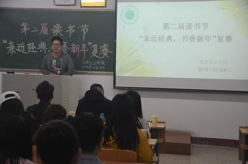 为激发金年会同学的阅读热情,丰富文化生活,提高文学欣赏水平,营造浓郁的校园读书氛围,促使广大学生远离手机亲近书本,金年会于3月24日晚7点在文化路校区1#408教室举行第二届读书节“亲近经典,书香新年”复赛,金年会团总支、学生会主席团出席并担任评委。