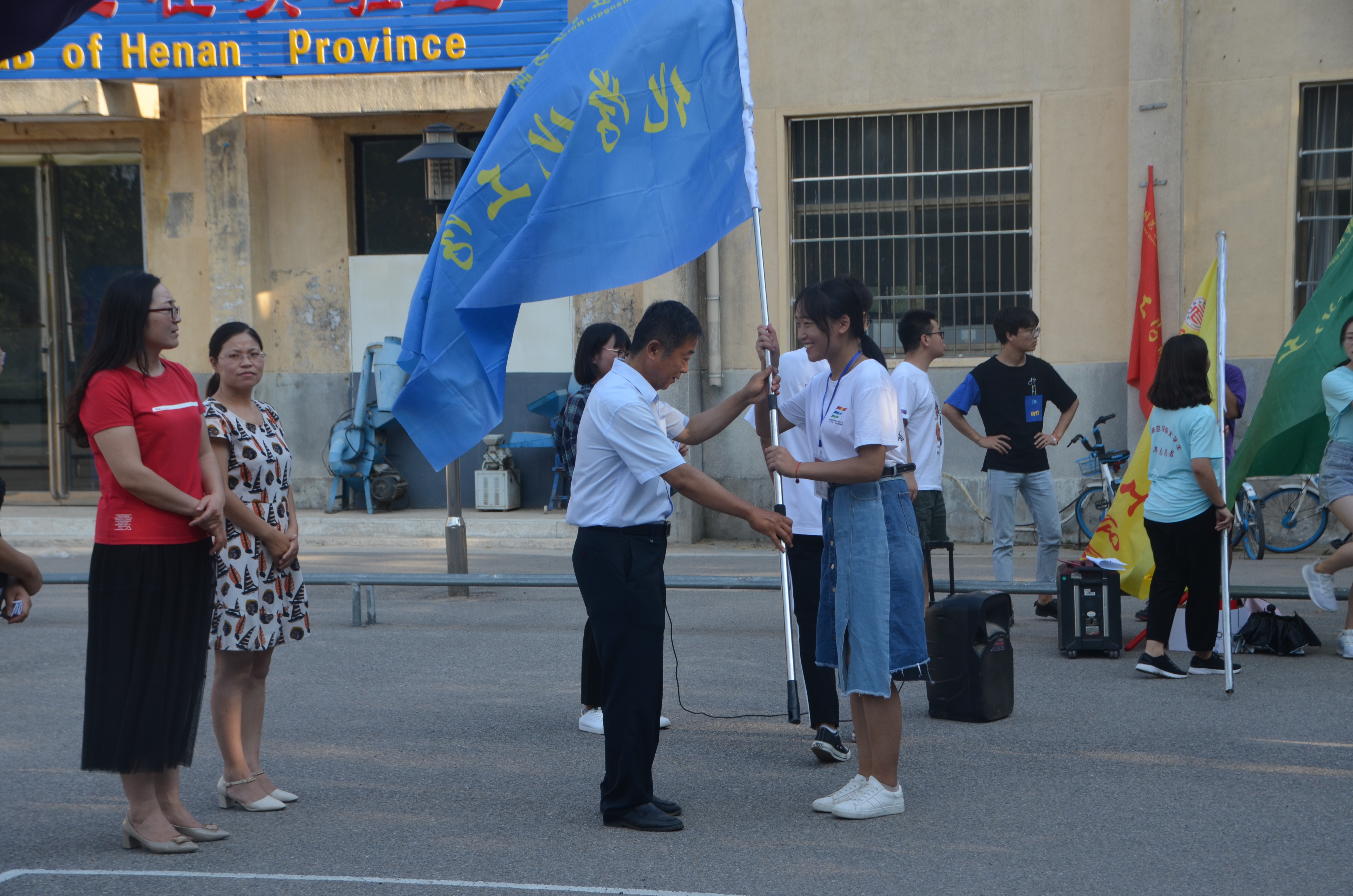 首先,刘瑛为出征仪式进行了致辞:学院“三下乡”各个团队在实践活动中要团结协作、互帮互助,在保证自身安全的情况下,以高度的责任感和使命感完成各项工作任务,充分展现金年会jinnianhuicom的形象和当代大学生的精神风貌。接着,学生代表姚雪娜上台发言:社会实践活动是大学生的“第二课堂”,是大学生成长成才的重要途径,同时也是青年学生传播现代文明、弘扬科学精神、为构建和谐社会贡献力量的重要途径。姚雪娜代表参加“三下乡”的全体人员庄重承诺:将一如既往的贯彻“应天归德,智圆行方”的校训,在实践中了解民生,锻炼自我,增强技能,展示商师学子的风采。最后,伴随着铿锵有力,志气昂扬的音乐开始了授旗仪式。仪式结束后,韩忠民宣布2019年暑期“三下乡”社会实践活动正式启动。