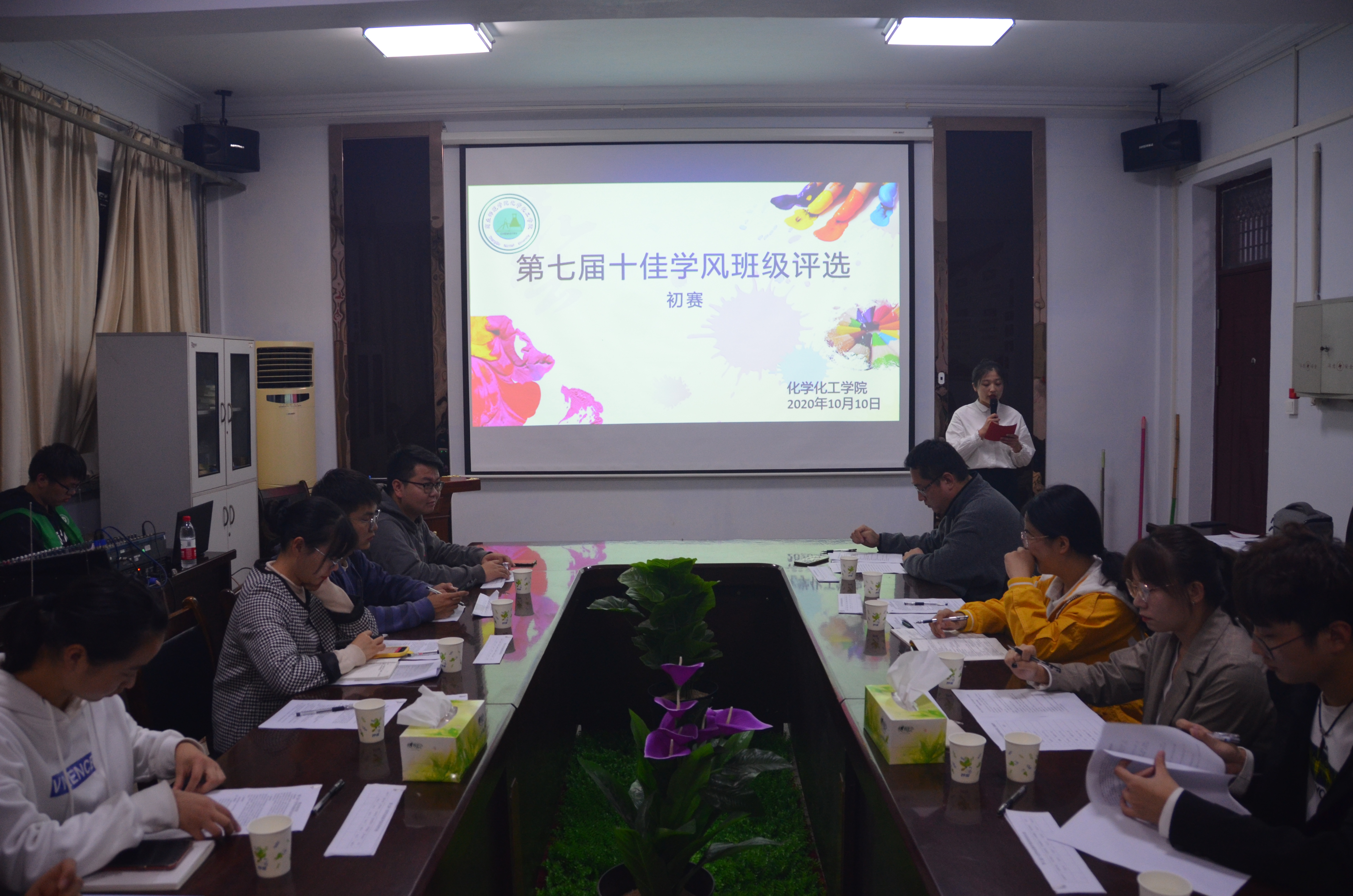 为培养学生的团结奋进精神和集体主义观念,建设优良的学风、班风,营造金年会jinnianhuicom优良的学习氛围和育人环境,10月10日晚,金年会jinnianhuicom于睢阳校区7号楼院会议室举办了第七届十佳学风班级评选活动(初赛)。金年会jinnianhuicom18级辅导员邵一方、学生会主席团、部长出席,18、19级共十一个班级参加,20级部分学生参与。