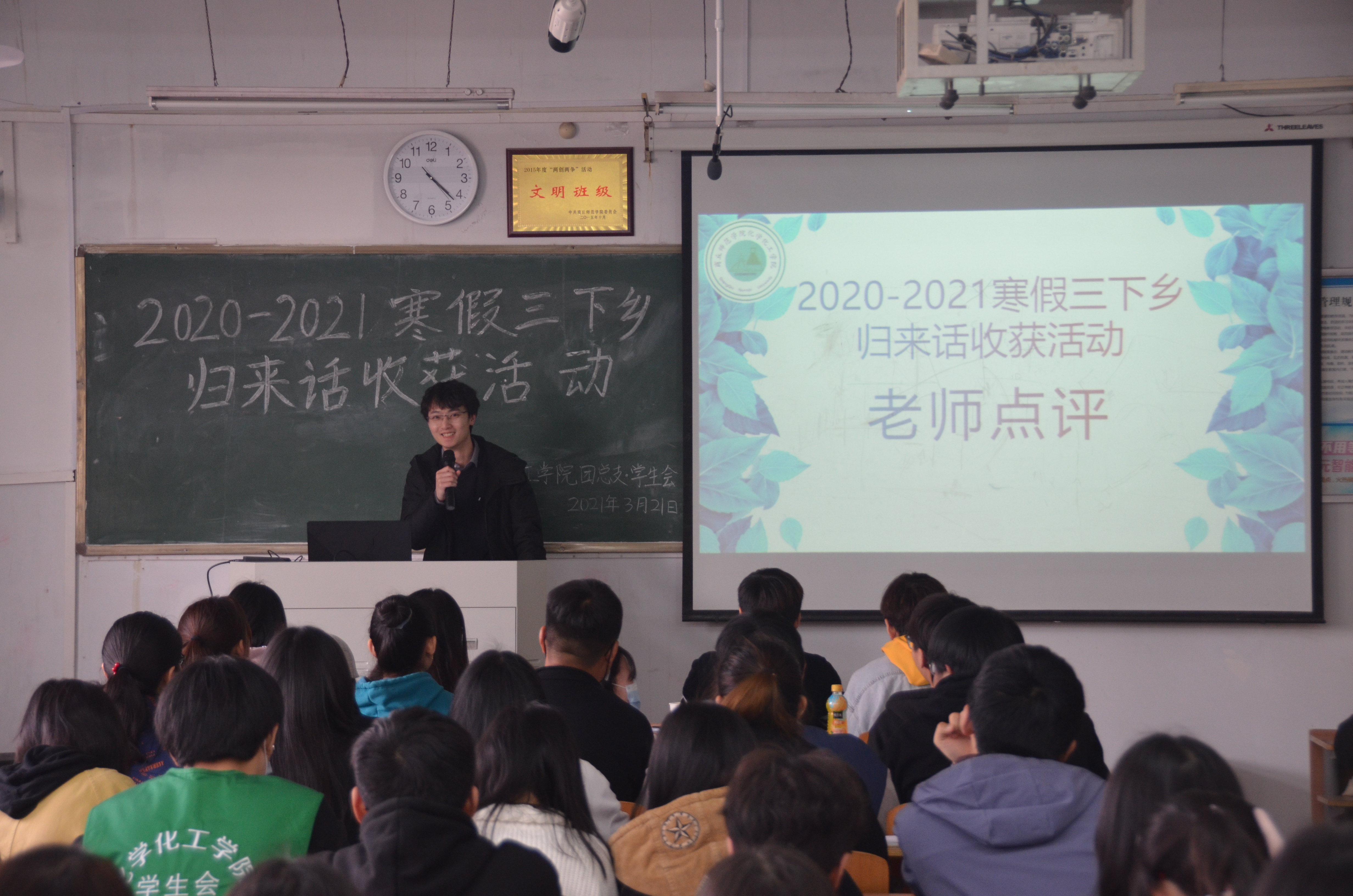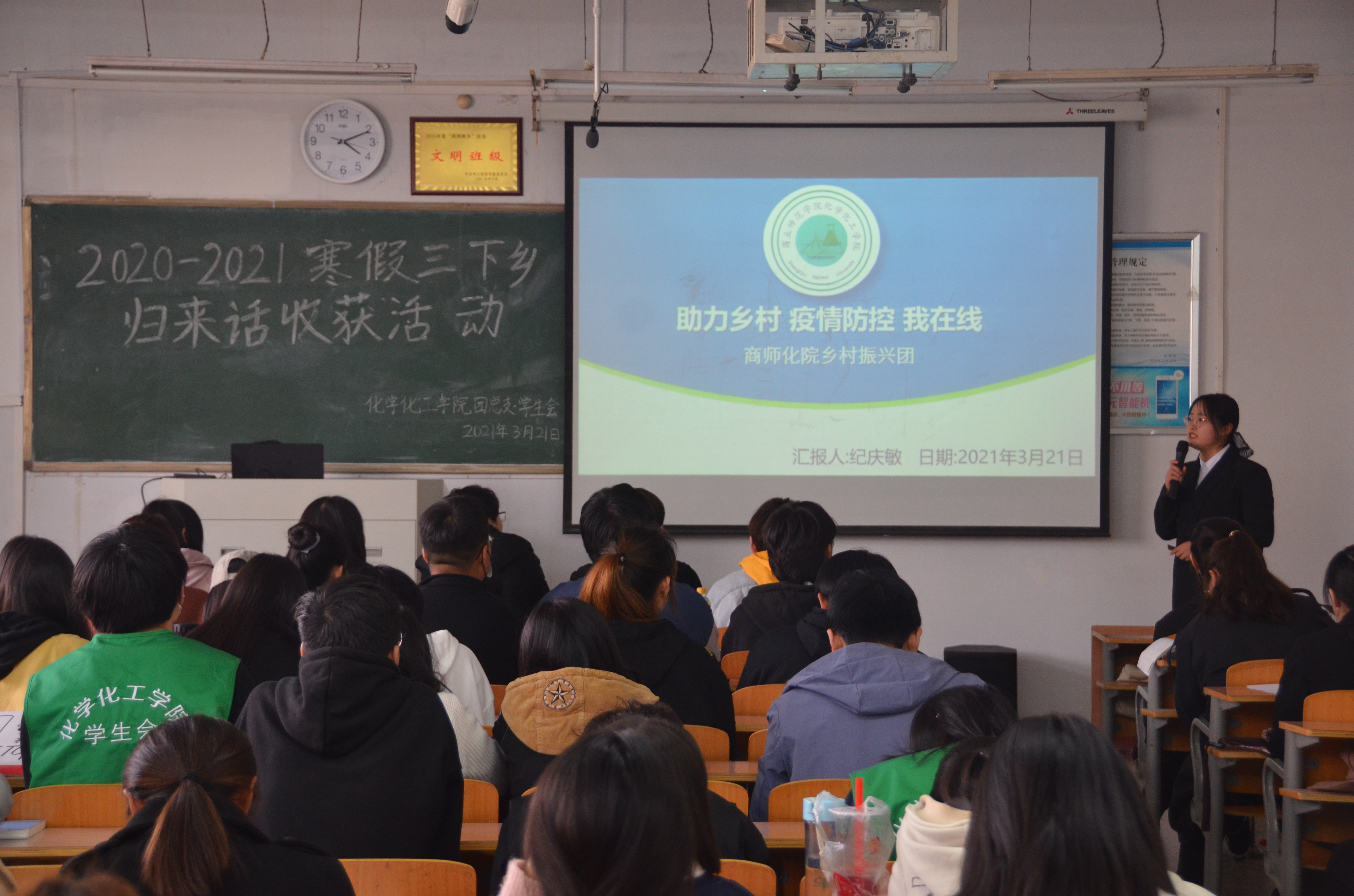 为引导青年学子扎根中国大地了解国情民情,通过社会实践坚定理想信念、站稳人民立场、投身强国伟业。2021年3月21日,金年会jinnianhuicom于睢阳校区1号楼408室开展以“青春聚力‘十四五’,乘风破浪展风采”为主题的2021年寒假“三下乡“实践归来话收获活动。金年会jinnianhuicom学生工作办公室副主任史展出席,大一大二学生参加了活动。