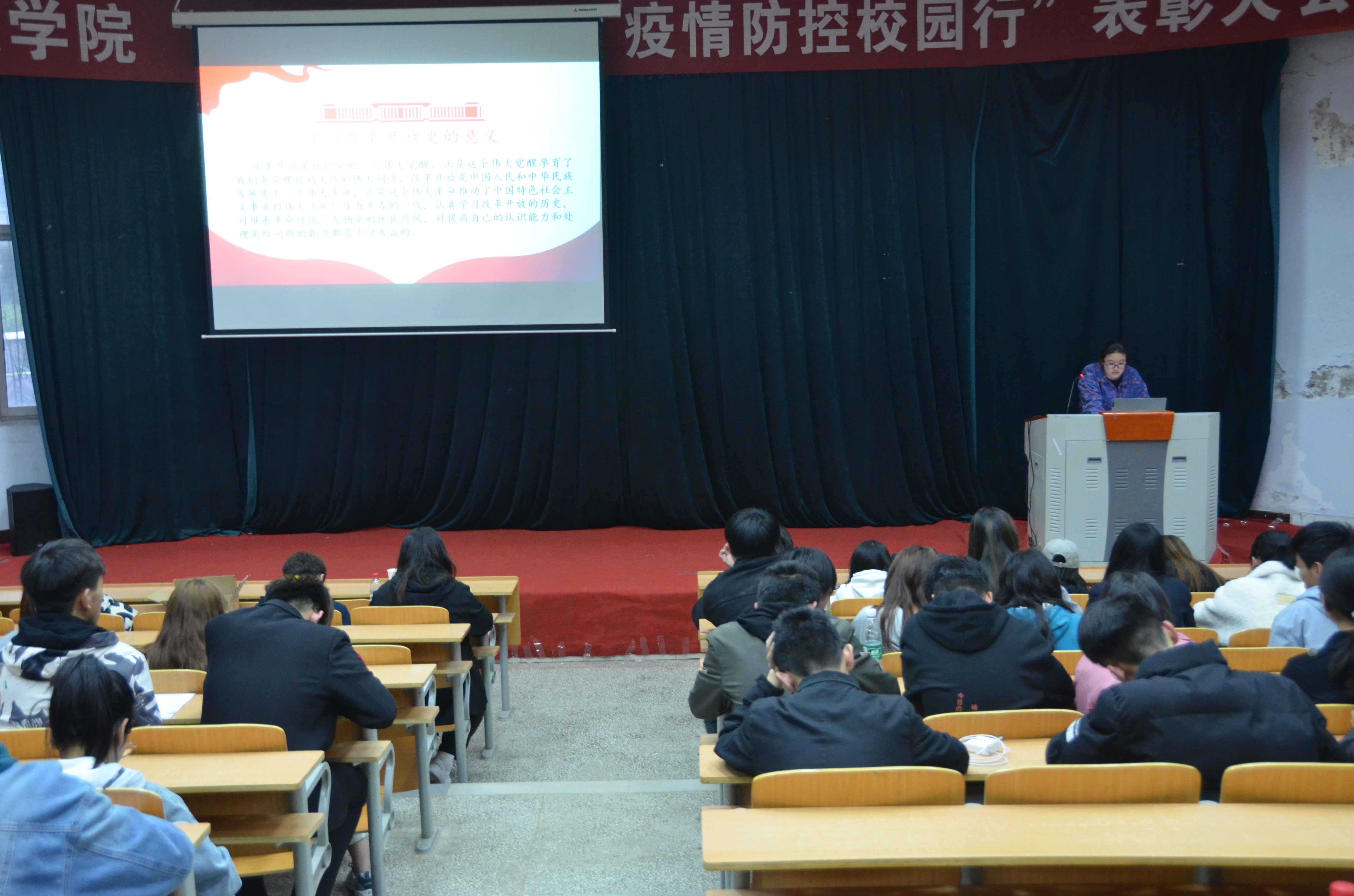 刘金婷从改革开放的历史背景进行讲解,使学生们认识到改革开放时的历史环境,了解了改革开放的意义。随后,刘金婷分别从经济、民生、文化、科学和技术等方面讲解改革开放取得的成就,使同学们了解了改革开放的发展之路,进一步认识到了改革开放的重要性。