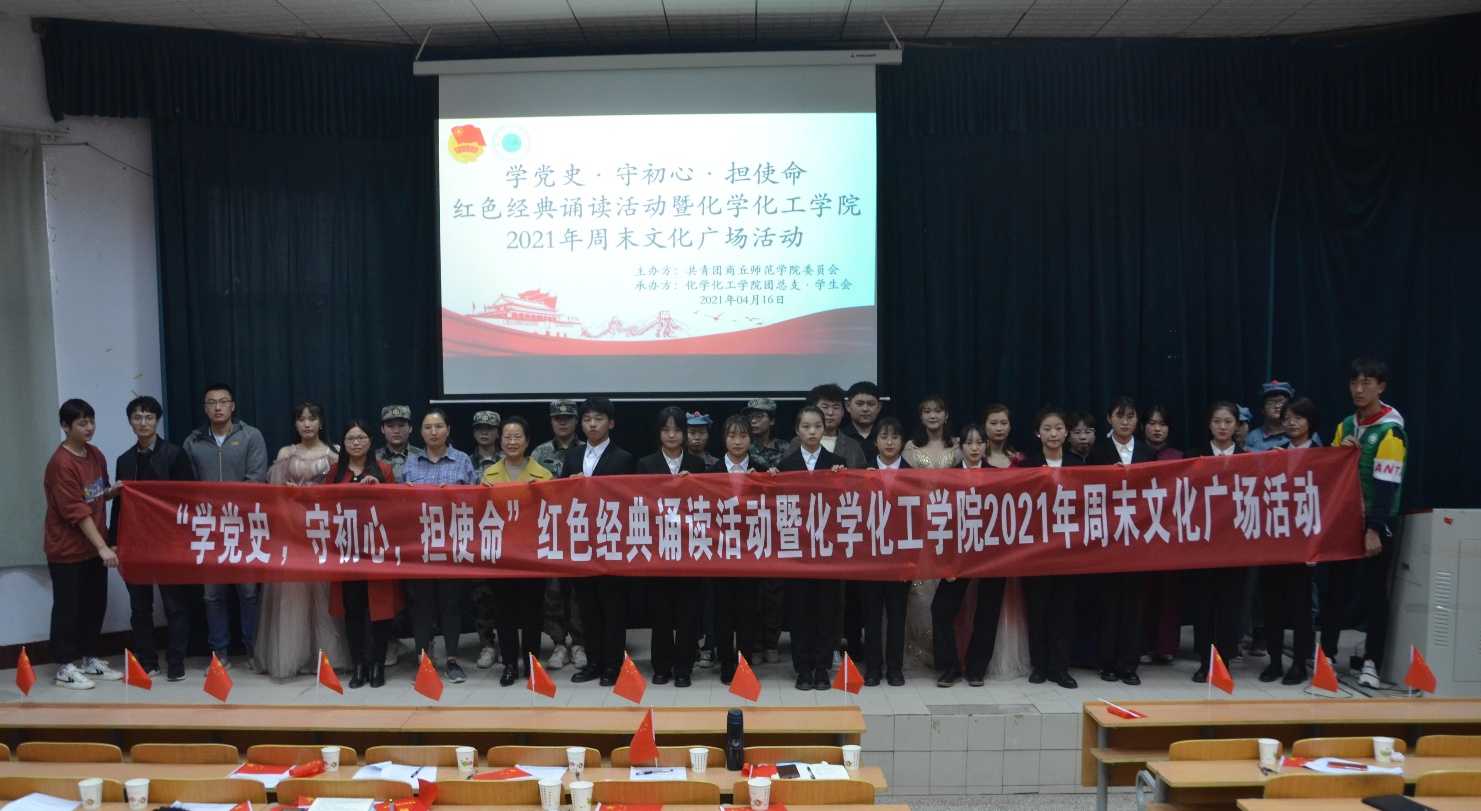 为了引导同学们诵读红色经典,讲好红色故事,传承红色基因,深入推进党史学习教育,4月16日下午,金年会jinnianhuicom于睢阳校区物电楼报告厅举行了“学党史、守初心、担使命”红色经典诵读活动暨金年会jinnianhuicom2021年周末文化广场活动。校团委副书记时光,院党总支副书记刘瑛、团总支副书记郭家瑞、学生工作办公室副主任史展参加活动。
