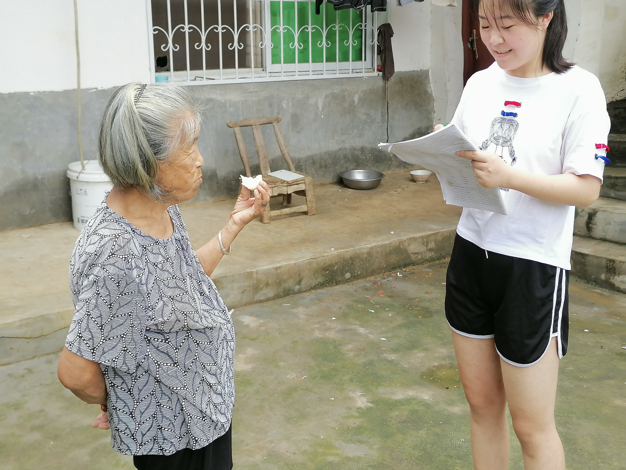 7月20日,团队成员李健双前往河南省信阳市一户老人家中拜访,老人年事已高,但身体硬朗,家人全部外出打工,老人最大的心愿便是希望孩子们能够早日回来,在疫情期间注意身体。李建双陪老人一起做午饭并安慰老人,家人一定会平安回来。