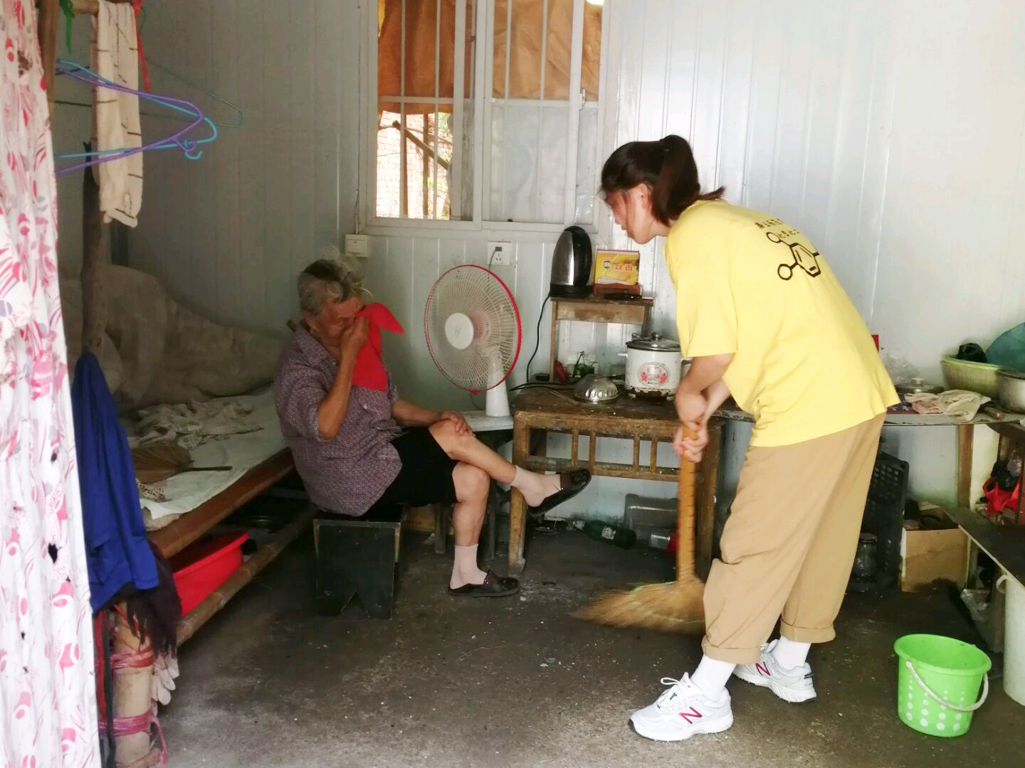 7月27日,团队成员凌欣欣前往河南省信阳市一养老院开展志愿者服务活动。老人常年一个人居住,近几年搬来养老院,经常感到孤独。凌欣欣和老人一起聊天,帮助老人打扫室内卫生,为老人做一顿热饭菜。这一小小的举动令多年独居的老人倍感温暖,流下了幸福的眼泪。