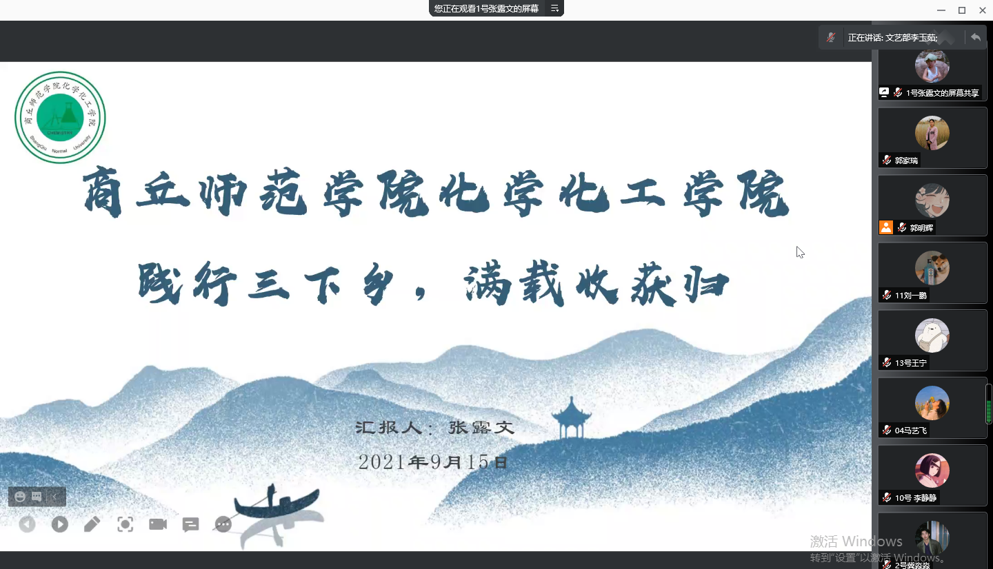 9月15日,金年会jinnianhuicom在线开展2021年线上暑期“三下乡”归来话收获活动。院党委副书记张颜梅、团总支副书记郭家瑞、学工办副主任史展、辅导员李宁娅参加了此次活动。