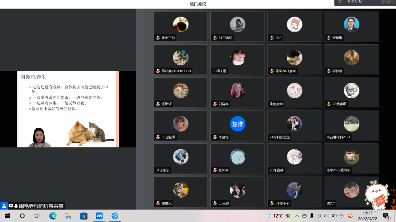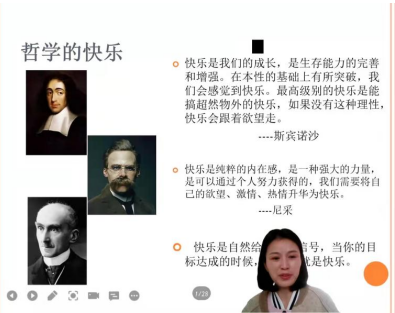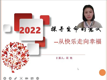 为培养金年会大学生良好的心理品质和心理调控能力,促进心理健康和专业知识的同步成长。3月22日,金年会jinnianhuicom通过腾讯会议开展 “探寻生命的意义——从快乐走向幸福”为主题的心理健康讲座。国际教育学院督导办公室主任周艳主讲,21级全体学生参加。