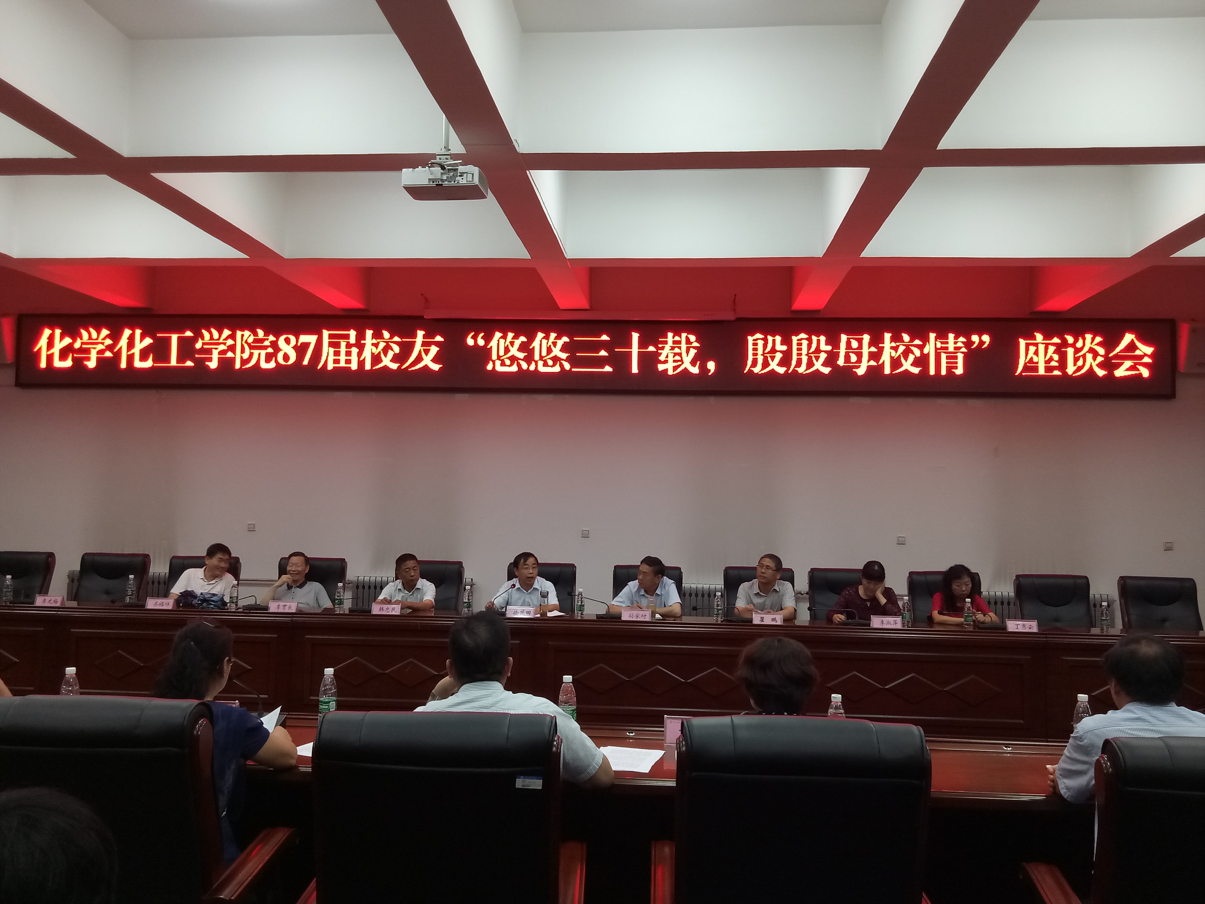 2017年7月15日下午,金年会jinnianhuicom87届毕业生重返母校,在平原路校区1号楼417会议室共庆毕业三十周年。副校长徐茂田老师,校地合作处处长、校友办公室主任孙家付老师,金年会jinnianhuicom党总支书记韩忠民老师、院长瞿鹏老师、团总支书记李龙梅老师,原化学科党总支书记李贯良老师,班主任李淑萍老师、班主任齐福祥老师、实验室管理丁秀云老师出席了座谈会,座谈会由87届校友刘 瑛、吴思锋主持。