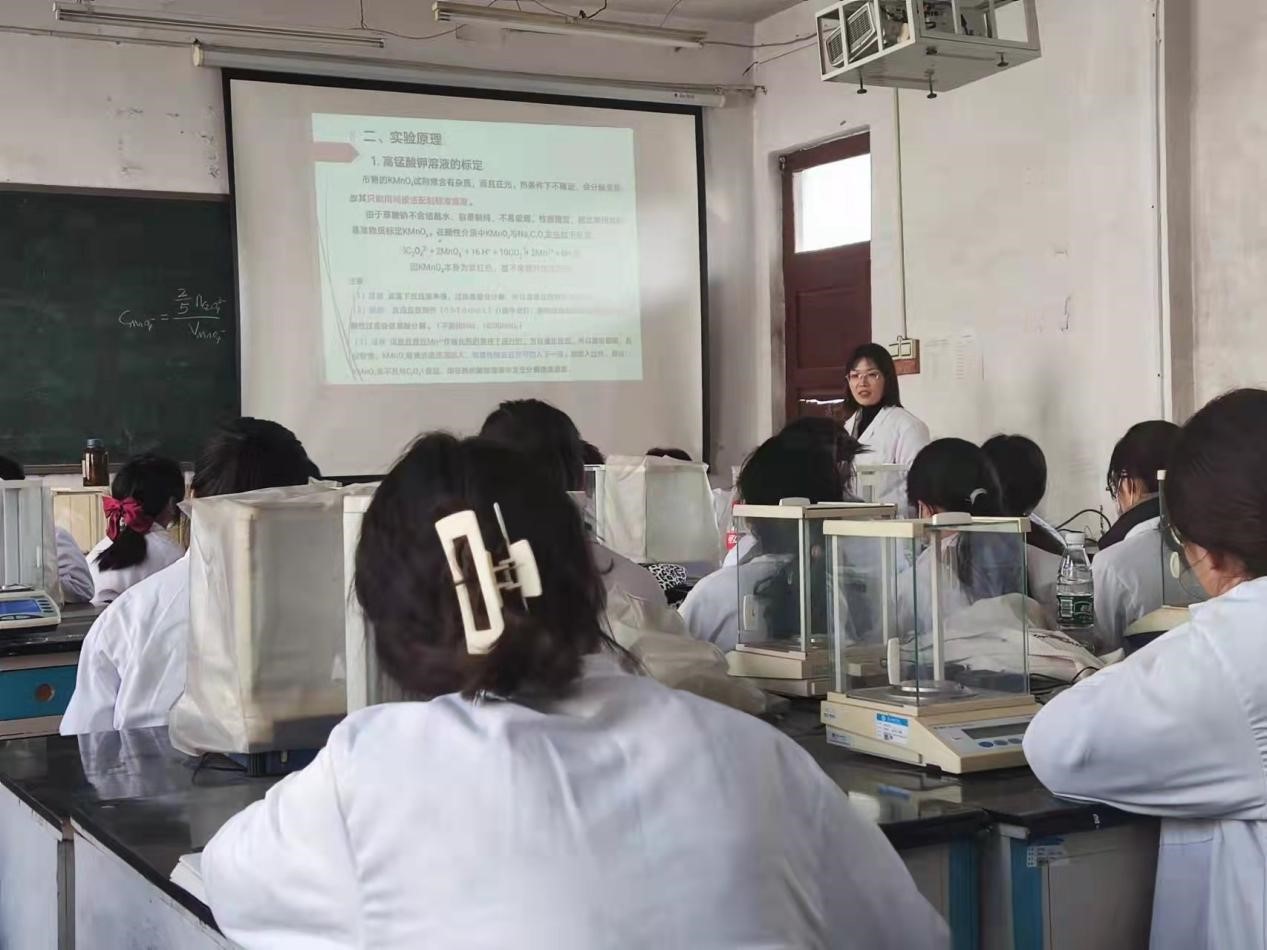 11月14日,金年会jinnianhuicom青年教师李春兰在睢阳校区2#312教室进行了《分析化学实验》公开课。青年教师导师常竹,院督导团成员冯翠兰,课程组老师莅临现场听课指导。