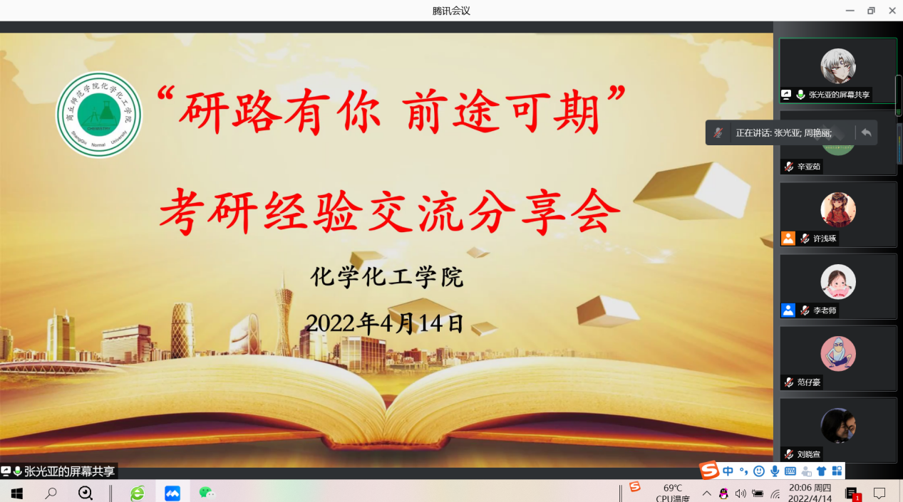 为帮助2019级同学明确考研目标,树立考研信心,深入了解考研招生政策和相关备考技巧,营造良好的学风建设。4月14日,金年会jinnianhuicom于睢阳校区1#307教室开展了以“研路有你,前途可期”为主题的考研经验交流分享会。此次会议采用线上、线下相结合的方式,副院长周艳丽,2019级辅导员、班主任及所有学生参加,会议由副院长王涛主持。