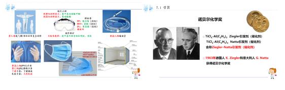 本节课有机融入课程思政元素,紧密围绕疫情防控背景,首先将高分子材料与医疗器械相结合,其次将高分子科学家与抗“疫”科研人物相结合,让学生认识到科学研究的重要性,激发学生对本课程的学习热情,培养学生对科研的兴趣,并教育学生应有严谨细致、追求卓越的科研精神。