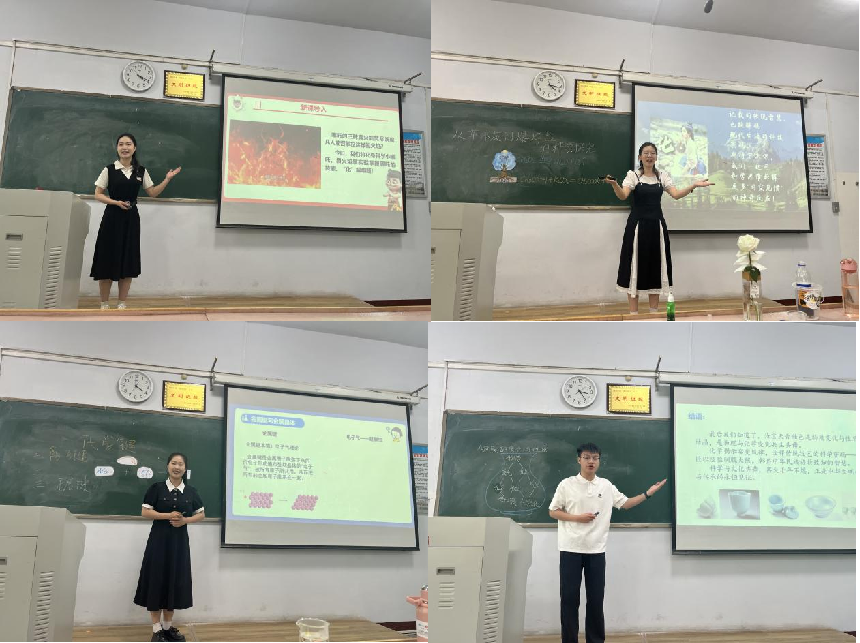 2022级化学专业各坊推荐的9名优秀选手参加比赛,他们自主选择初高中化学教学内容进行微型课展示。参赛选手教态自然大方,教学环节设计科学合理,授课过程体现新课程理念,多位同学借助趣味化实验彰显化学学科特色,充分展示了个性化的教学风采,赢得了评委和同学们的阵阵掌声。