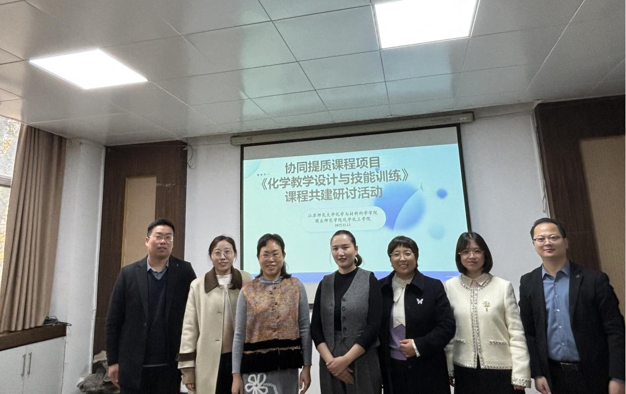 2025年11月13日,江苏师范大学化学与材料科学学院与金年会jinnianhuicom金年会jinnianhuicom协同提质项目《化学教学设计与技能训练》课程共建研讨活动圆满举行。江苏师范大学化学与材料科学学院副院长刘建全、金年会jinnianhuicom金年会jinnianhuicom副院长王涛,以及双方学院学科教学论骨干教师共同参与了此次研讨活动。