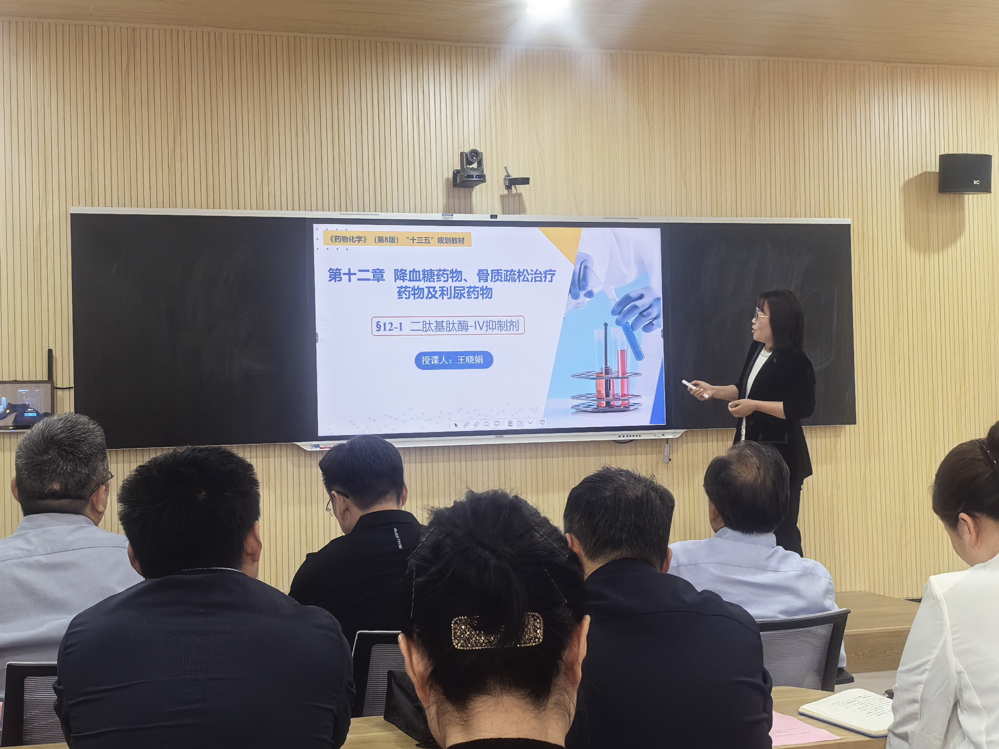 研讨会上,金年会王晓娟老师以《新型降血糖药物--DPP-IV抑制剂》为题进行教学示范。课堂紧扣专业知识点,巧妙融入家国情怀、科技创新、科学家精神等思政元素,结合学科发展史中科学家攻坚克难的故事,诠释精益求精的工匠精神。课堂采用“问题链+情景模拟”互动模式,实现了知识传授与价值引领的有机统一。