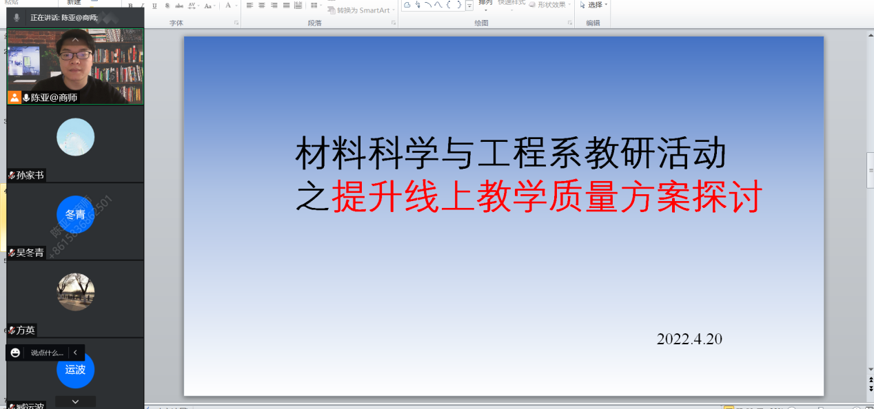 4月20日,材料系利用腾讯会议召开了2022年春季学期第四次教研活动,材料系全体老师参加了此次活动,活动由系主任陈亚主持。