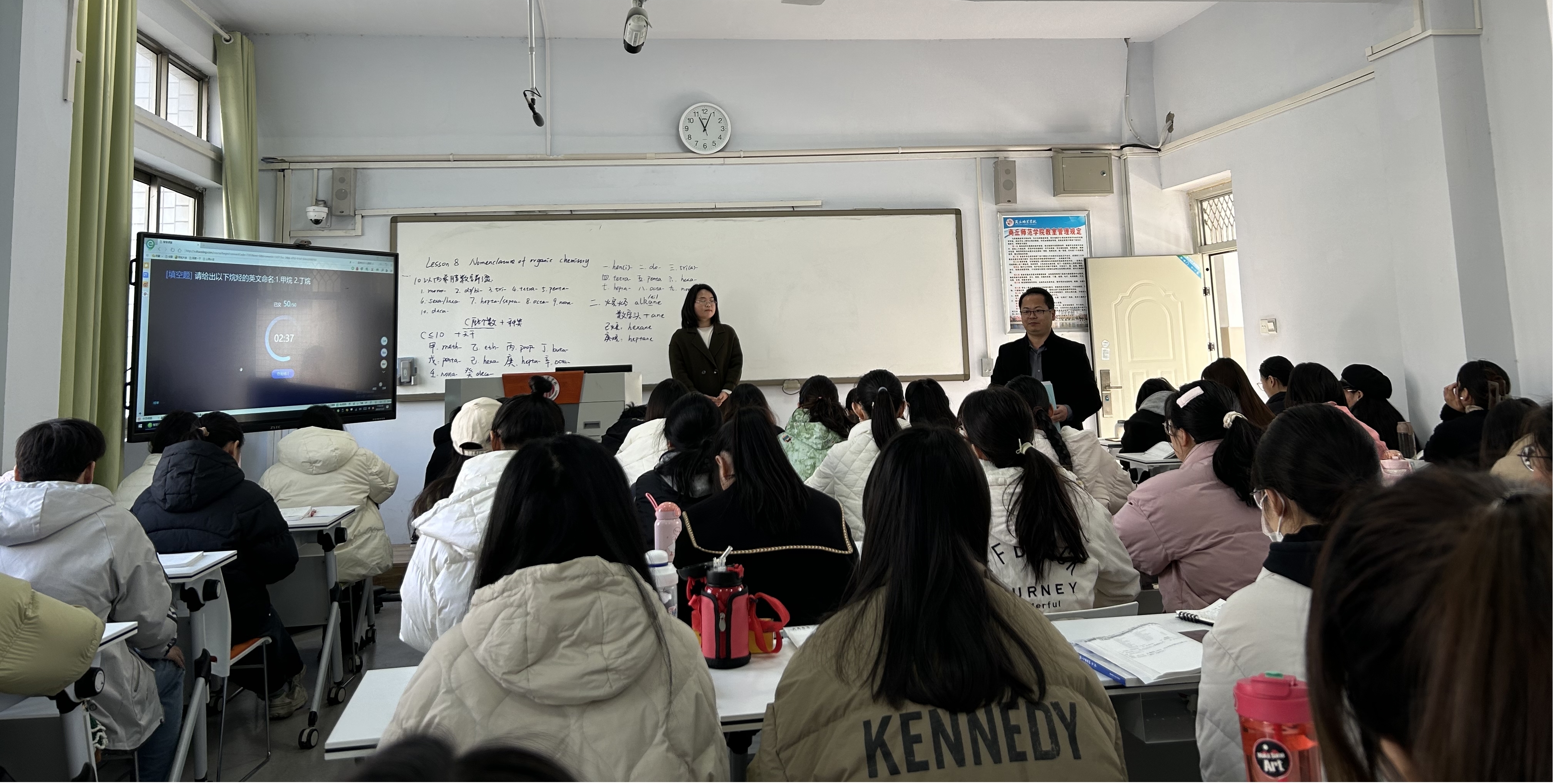 11月27日上午第3节,金年会jinnianhuicom杨晓燕老师的《专业外语》公开课在1号教学楼310教室进行。副院长王涛、院督导团成员以及近两年新进无课老师现场观摩。